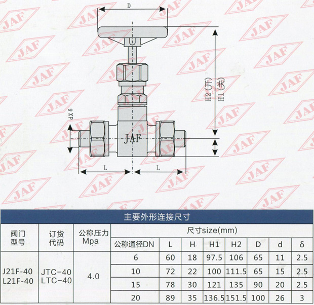 J表示截止閥 L表示節(jié)流閥 T表示結(jié)構(gòu)形式為直通式 G表示管接頭連接 40代表公稱壓力為4.0MPa,40后不標(biāo)注代表代表閥體材質(zhì)為鍛鋼。